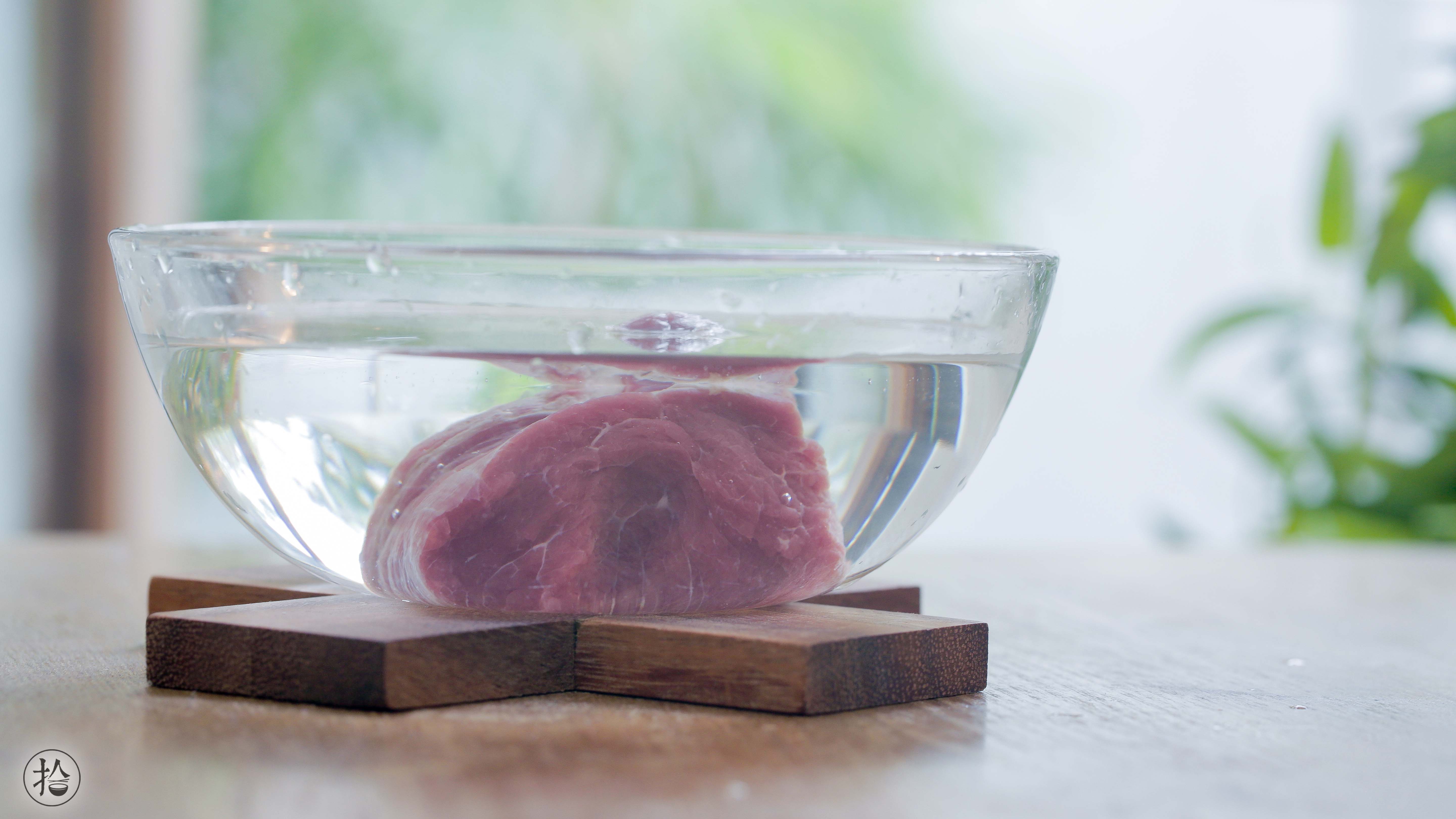 牛里脊肉用清水浸泡约15分钟,去除血污。
