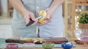 土豆先炒一下,可以定型,油脂的加入也会让土豆也会更加香甜。