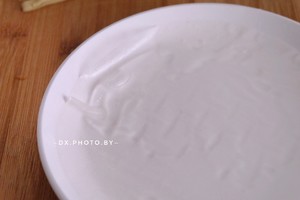 盘子内倒入适量温水,取出越南春卷皮沾湿,使春卷皮变软