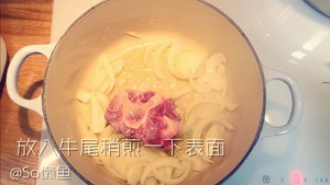 放入牛尾稍煎一下表面