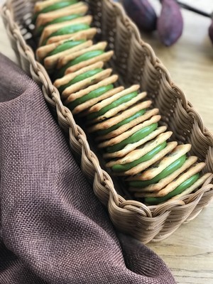 在上面再夹另外一片,轻轻按一下,我觉得不要把馅按出饼干以外,不好看,不过每个人审美观不同,你如果喜欢夹馅冒出来,就多按一下