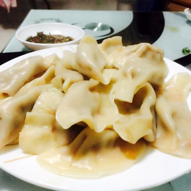 因为饺子皮是在市场买的现成的,接下来包完饺子煮就好了,煮饺子沸腾的时候可以加小半碗凉水,如此三次饺子基本上就可以出锅啦!