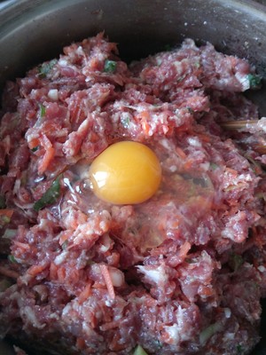 1. 1.将牛肉和猪五花肉绞成肉泥。葱姜切成碎。