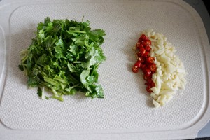 大蒜.小米椒切碎.