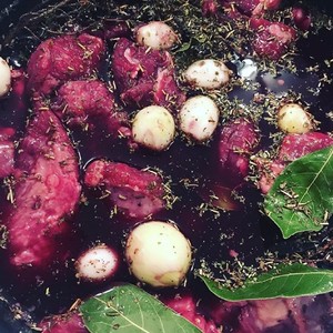 牛肉切块 用红酒 香叶 百里香 迷迭香 欧芹 黑胡椒粒 丁香 蒜瓣 一起腌制 颜值越久味道越好 可以的话最好头天晚上开始腌制 放入冰箱冷藏 第二天做的时候取出 做之前加入配菜一起腌