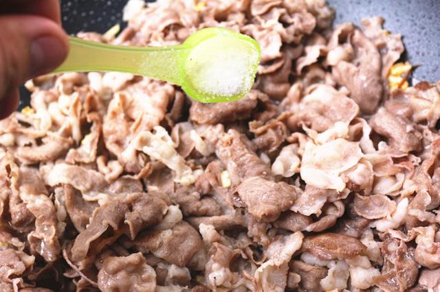 放入少许盐、鸡精、五香粉,快速翻炒均匀。