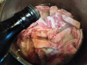 锅内加足量水,放入焯好的羊腩,将大料用纱布包好放入锅中。