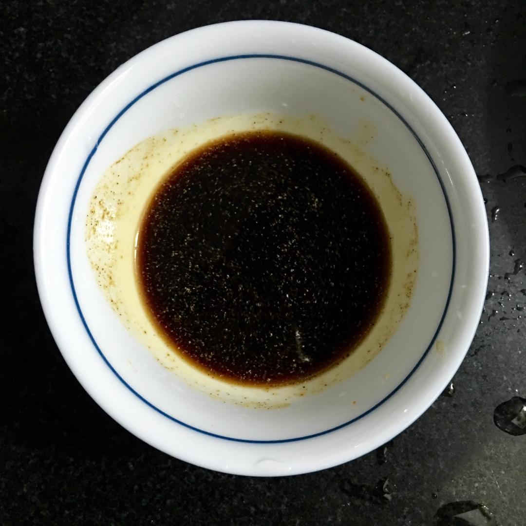 料酒、生抽、白糖、盐、胡椒粉、孜然粉加适量清水调匀成味汁;