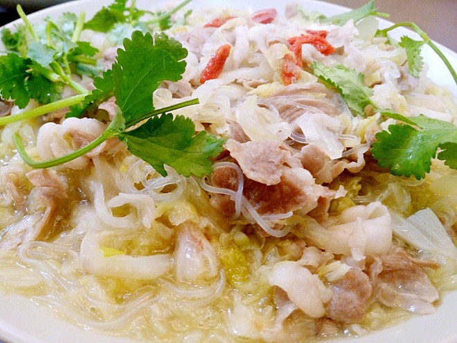 放入泡好的粉丝 及焯好的肥羊翻炒。