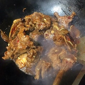 加入没过羊蝎子的开水之后,加入黄豆酱,盐,糖,米醋,拌匀