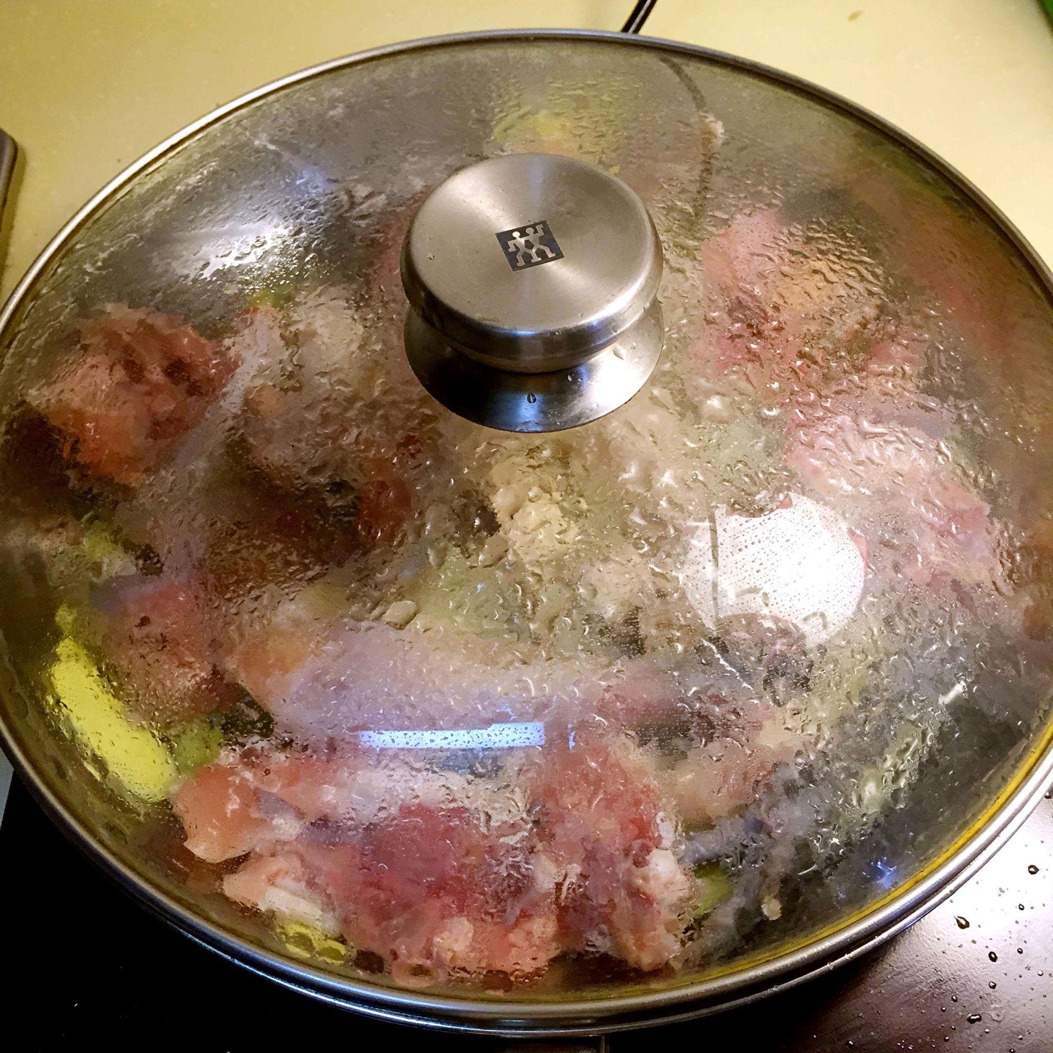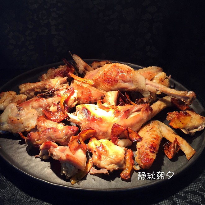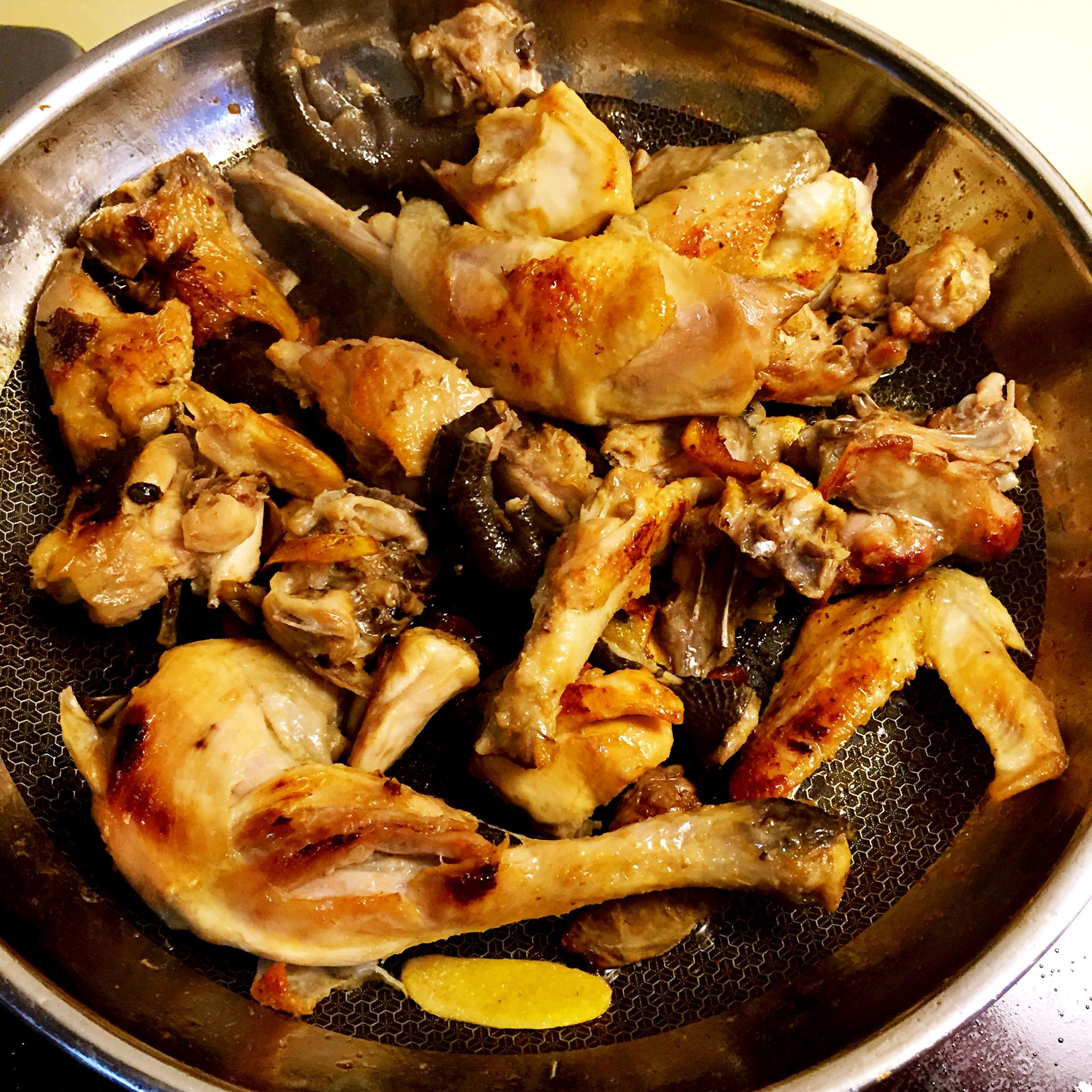 土鸡斩大块约19块,加适量盐和糖腌制5~6小时入味。中午急着和闺蜜聚歺忘拍腌制的样子,就这张成品也不赖吧。