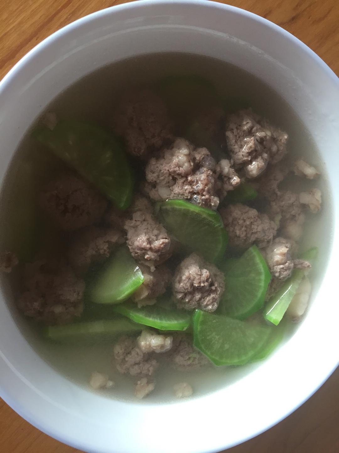 锅内烧开水放入肉丸在次开水肉丸捞出水倒掉。锅内在烧开水倒入肉丸倒入青萝卜开锅几分钟就可食用