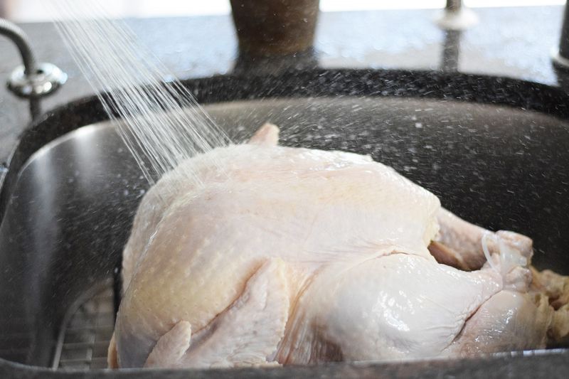 烤前取出火鸡,可以先冲洗一下,擦干,再做后续抹黄油的工作