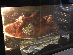 终于可以入炉烘烤了,看了很多方子说180度下层烤3-4小时,翻看了一下我的倍科大烤箱说明书,写着火鸡要用热风档或3D热风档,放在最下层,250度或更高烤25分钟,再用180-190度继续烤,直到熟透