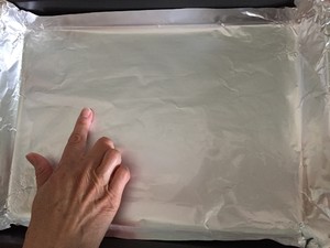 烤盘放锡纸,底层均匀涂抹一层薄薄的橄榄油。