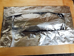 铺好一张锡纸上面抹油,抹得稍微宽点只留两边不用抹