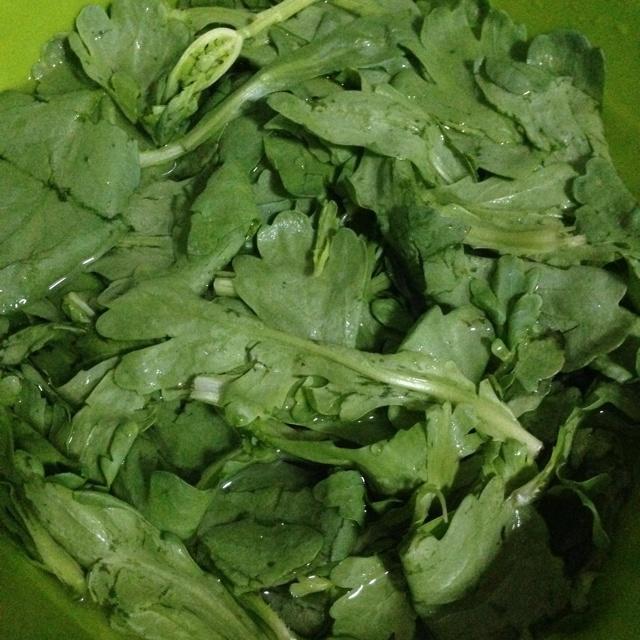 茼蒿洗净,我用的超市买的短茼蒿(超市快关门了,只买到了这种),可以的话推荐大家用长茼蒿,也就是蒿子杆~