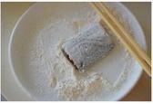 将腌制好的带鱼沥干水分,表面沾薄薄一层干粉