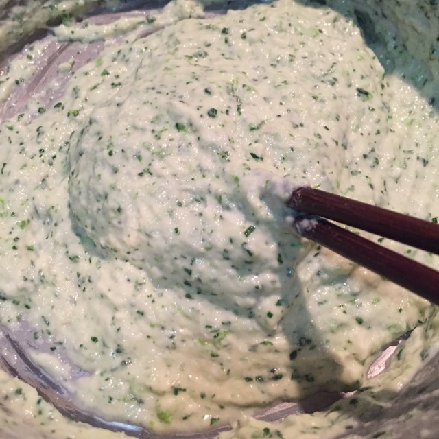 4. 加入菠菜泥和适量面粉