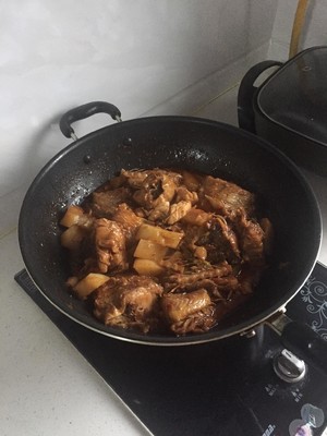 7. 加入开水之后放入土豆中火慢炖