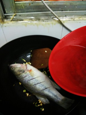 鲈鱼洗好,鱼背上划几刀。葱,蒜香菜切碎。