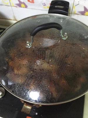 这里可以适量加点水,防止糊锅。盖锅盖,中小火再焖蒸15分钟。