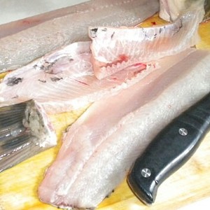 草鱼把两边肉剃开,把鱼腩片开,我们用鱼肉,鱼腩不用,也可以在市场买鱼的时候让鱼市师傅帮你切,或者只买一边的鱼肉
