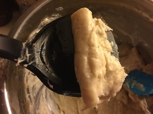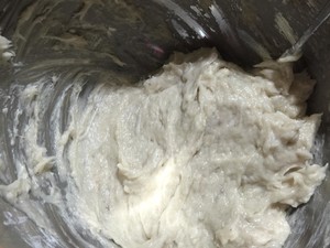 搅拌完毕加入调味和粉类 用大机器的可以在机器内再打30秒 我是直接用勺子拌匀的