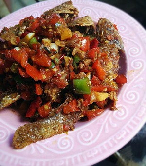 把除鱼的所有配料一起爆炒,放好盐味精鸡精后再倒入鱼下去焖,油不够可以加适量水,干了就可以装盘。