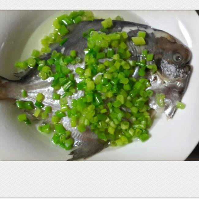另起油锅将葱油烧热,热油淋在蒸好的鲳鱼上“呲啦”一声就好啦!