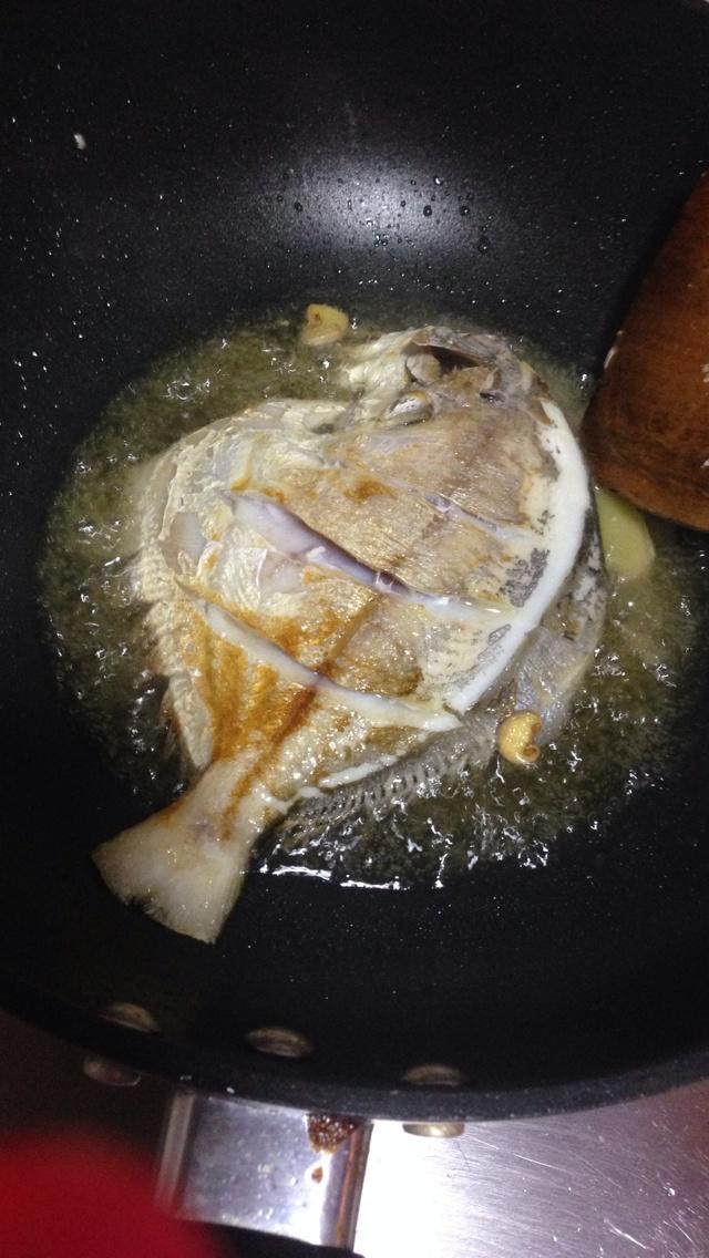 2. 起油锅 把鲳鱼放在油里干煎至鱼熟 可以开中小火慢慢煎