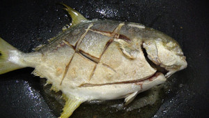 将金鲳鱼煎至两面金黄。