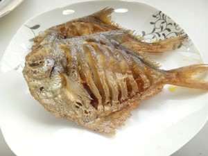 锅入油,升油温至六成热,保持中大火,炸至鱼半干。油温低,鱼不但炸不干,再加上拨动还容易在油中碎掉。油温太高,鱼的外表焦糊,而鱼肉太嫩,也是不行。所以鱼炸的好坏,这一步中控制油温很关键。