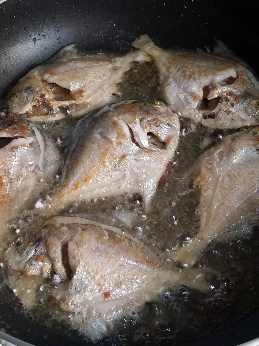 平底锅放油烧热,放入鲳鱼煎至两面金黄,