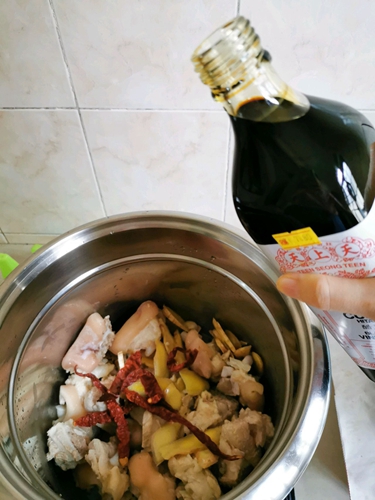 做法分解6:我放了一瓶半左右的黑醋,黑醋较酸所以后面用到的糖量较重,如果是甜醋,建议和酸黑醋掺着用,口味才好!不然就太甜口了,酸味太少不好吃,当然这也是看个人口味,有的人喜欢酸,有的喜欢甜!