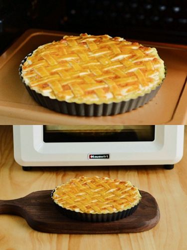 如果表面这一层嫌麻烦,也可以直接用整片面皮盖上,四周稍微捏一下以免爆开也可以哦!来自爱折腾的Q果的作品。