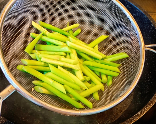做法分解6:捞起来的芦笋,放到冷水里浸泡