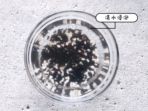 做法分解2:黑豆,黑米,白糯米用清水浸泡两个小时。