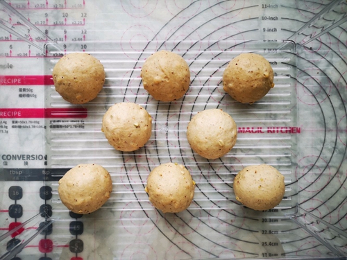 做法分解10:面团平均分成八份,滚圆松弛15分钟。