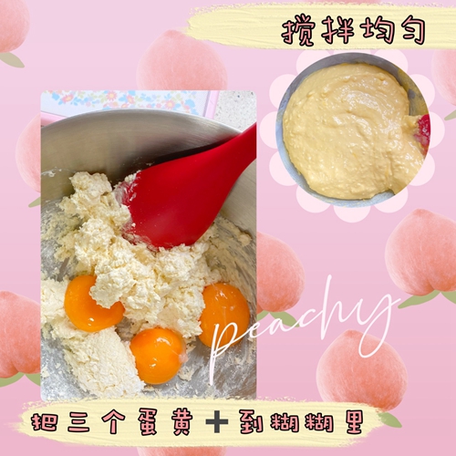 做法分解3:2:鸡蛋蛋清蛋黄分离蛋黄直接打入低粉盆中翻拌均匀成为顺滑的蛋黄糊