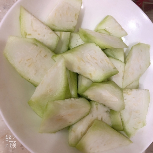做法分解1:丝瓜去皮切成滚刀快