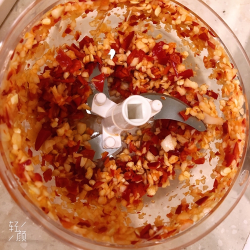 做法分解3:蒜和小米辣打成碎末