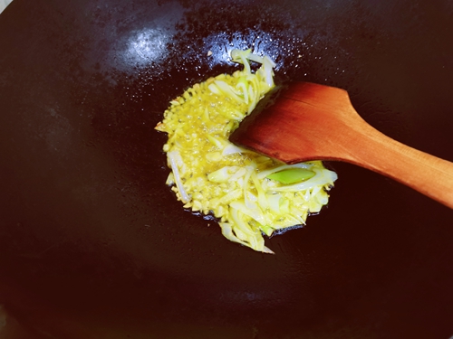 做法分解6:油温五成热放入葱姜蒜爆香。