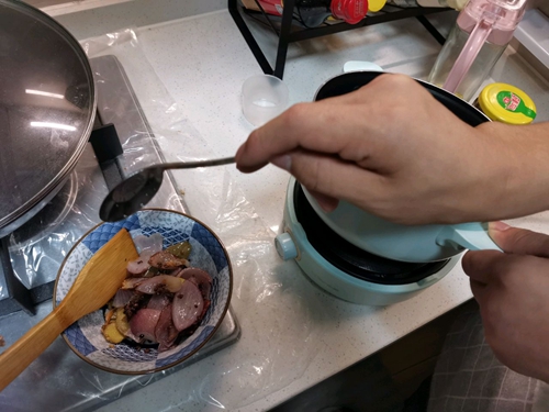 做法分解3:热油放香料爆香,这个小熊的锅基本爆不起来…