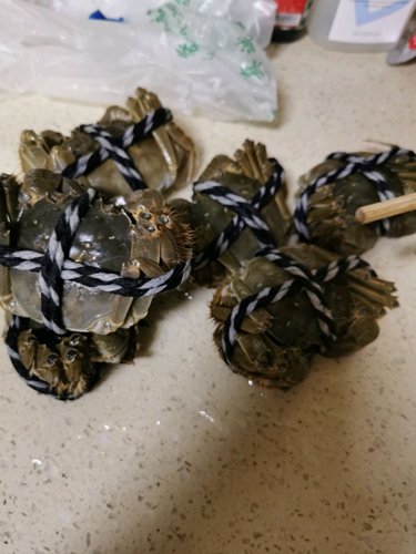 做法分解1:买来的大闸蟹用刷子刷干净,绳子不用解开