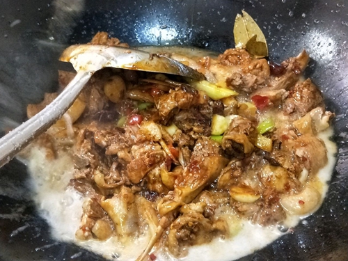 做法分解8:然后倒入一瓶啤酒,中火焖30分钟。