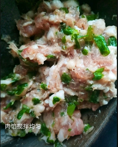 做法分解3:肉馅材料混合,同样口重加上一点盐,我就加了,因为我买的椒盐没啥味,喜欢吃梅干菜的也可以放,或是其他肉的都可以