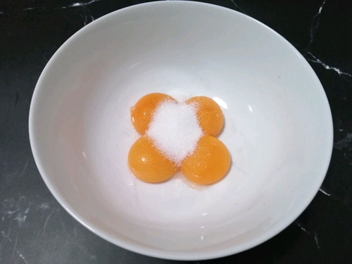 做法分解3:90克砂糖和90克清水混合,加热至沸腾冒小泡泡(116℃左右)