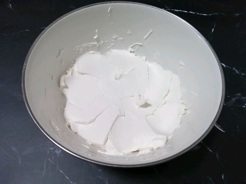 做法分解5:换一个大碗,将马斯卡彭芝士软化,防止出现颗粒