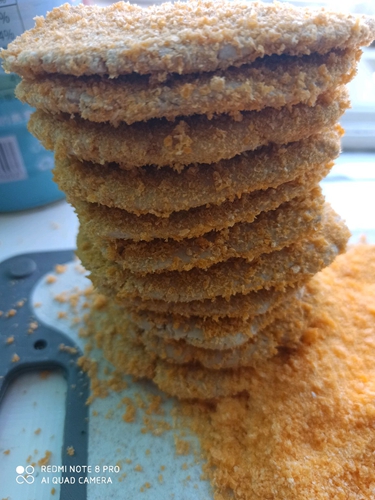 做法分解4:按压成饼的形状,裹上面包糠以此